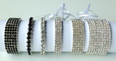 # 304, 304/B Single Strand Rhinestone “Tennis” Wristlets in Crystal and Black